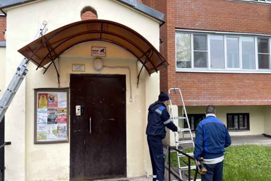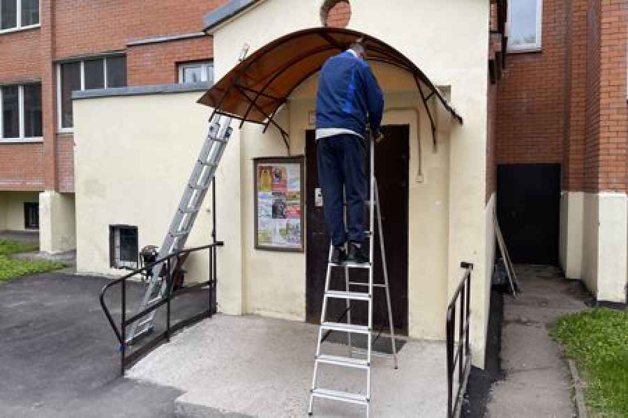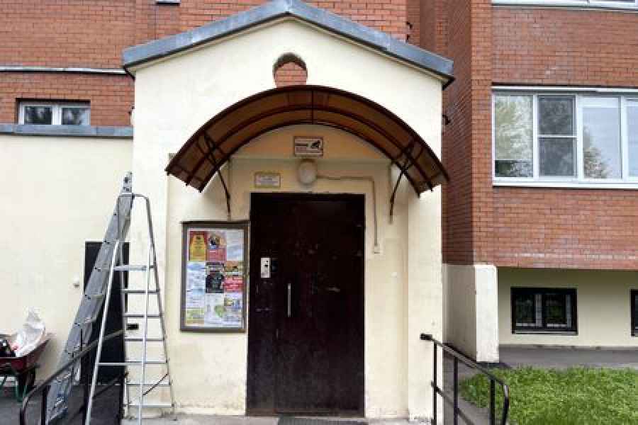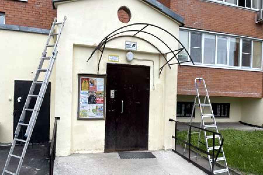 Управляющая компания начала ремонт козырьков над входными группами в МКД по адресу: Московская обл, г. Фрязино, ул. Лесная, д. 1.