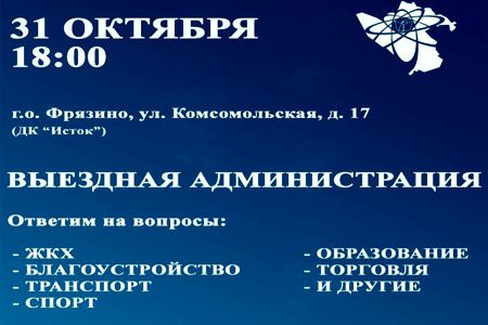 31 октября 2024г. в 18:00 состоится выездной прием жителей представителями администрации городского округа, ресурсоснабжающих организаций, коммунальных и социальных служб Наукограда.
