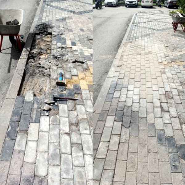 Управляющая компания дальше проводит благоустройство, ремонт придомовой территории. Как начался ремонт и замена брусчатки на пешеходных зонах. Проводится озеленение придомовой территории - посадка новых деревьев, кустарников. Также выполнится устройство газона, который будет регулярно поддерживаться и ухаживаться. В результате благоустройства придомовая территория станет более ухоженной, комфортной и привлекательной для жителей дома.