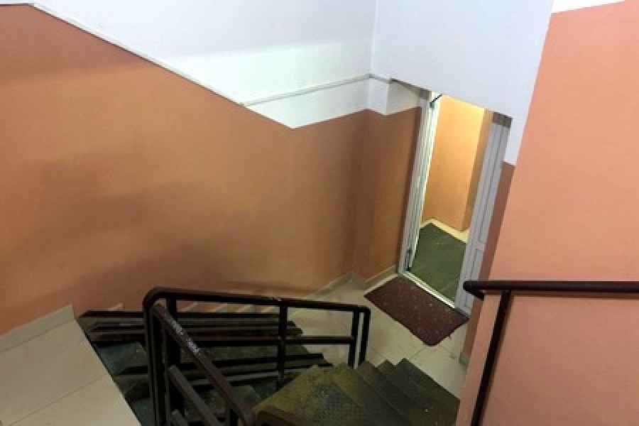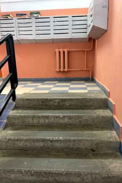Ремонтируют ступени на лестничной клетке;