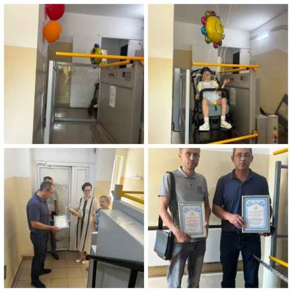 Подъемник был установлен для семьи Крыловых, у которых ребенок – инвалид. Они также выражают благодарность людям, принявшим участие в установке данного оборудования. Это облегчит вывоз ребенка на прогулки. Данное оборудование было установлено в доме №11 по ул. Октябрьская. В данном доме уже имеется два подъемника