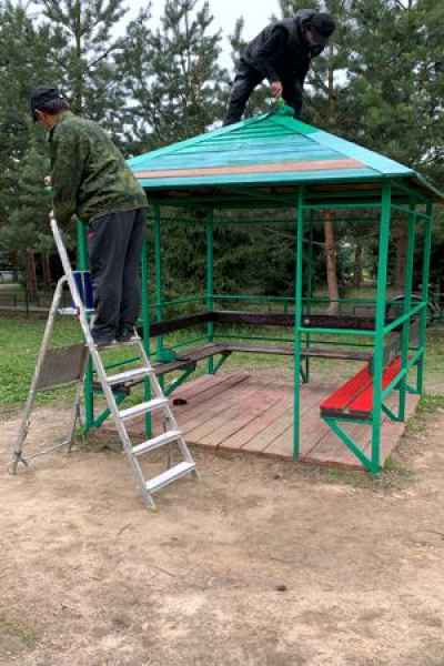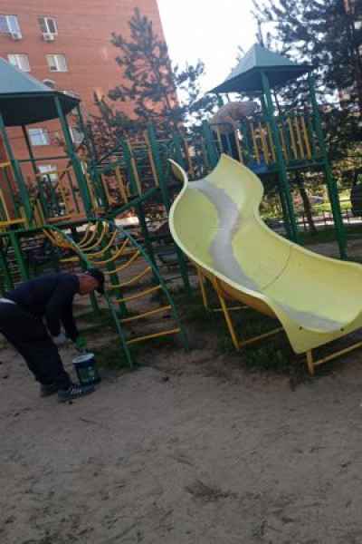 Управляющая компания ежегодно весной проводит покраску элементов детских площадок, их осмотр и ремонт.
