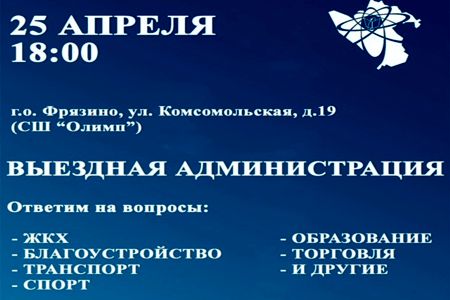 25 апреля в 18:00 проведем с командой открытую встречу с жителями в формате «выездной администрации». На вопросы жителей буду отвечать лично, также прием будут вести мои заместители, руководители направлений, управляющих и ресурсоснабжающих организаций, социальных учреждений.