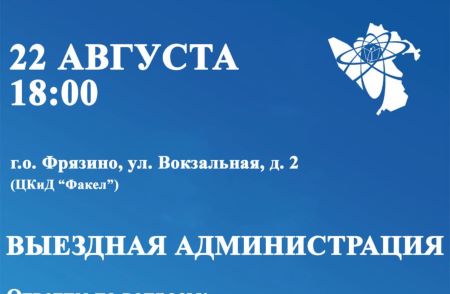 22 августа в 18:00 пройдет выездная встреча с жителями администрацией городского округа Фрязино. На встречи будет присутствовать глава города и его заместители, депутаты, представители ресурсоснабжающих организаций, коммунальных и социальных служб Наукограда будут готовы ответить на все ваши вопросы.